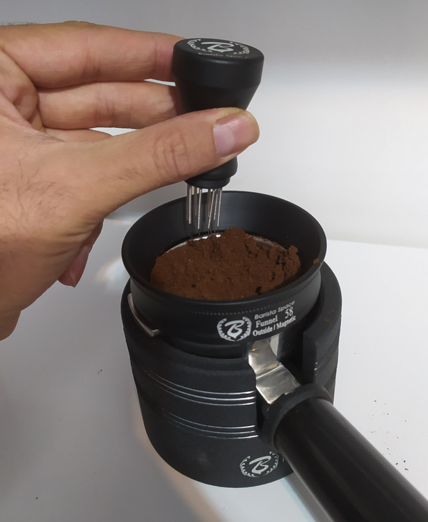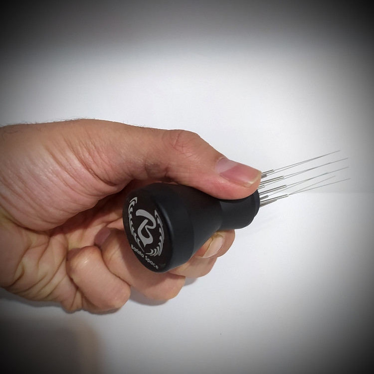 نیدل ارتعاشی مجهز به استند با سوزنهای استیل نانومتری که یک نیدل بسیار حرفهای برای آماده سازی قهوه در داخل سبد قبل از استفاده لولر میباشد